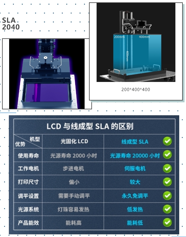 極光創(chuàng)新SLA 2040采用全新線性激光掃描技術,長達20000+小時的激光光源使用壽命,是傳統(tǒng)LCD光源的十倍!使用壽命更長久!