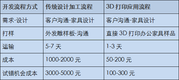 隨著消費模式的升級,“定制”化在很多行業都開始流行起來,個性、年輕、時尚等標簽不得不讓更多的企業開始轉型往定制化發展。然而當前的傳統設計加工方式無法滿足現有辦公家具廠商與時俱進的需求,對于辦公家具廠商來說,3D打印定制化應用恰好能夠助力辦公家具將產品快速打入市場。