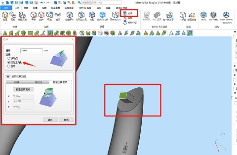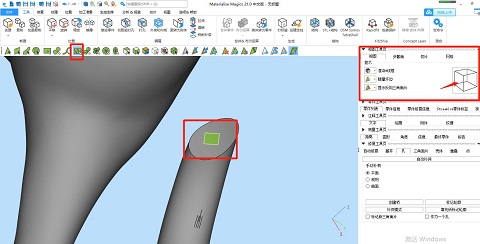 ⑤設(shè)計(jì)插銷,選擇“框選標(biāo)記并重畫網(wǎng)格”功能,選擇一個(gè)模型的接觸面并框選出插銷大小和形狀。可以借助視圖工具頁(yè)來(lái)精準(zhǔn)調(diào)節(jié)視圖方向。