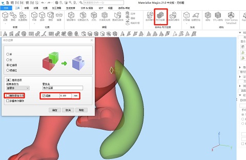 ③再通過(guò)“分離標(biāo)記”功能將標(biāo)記部位分離,這樣我們將得到2個(gè)帶有接口破面的模型,選中其中一個(gè)模型,移動(dòng)指定距離遠(yuǎn)方便后續(xù)操作。