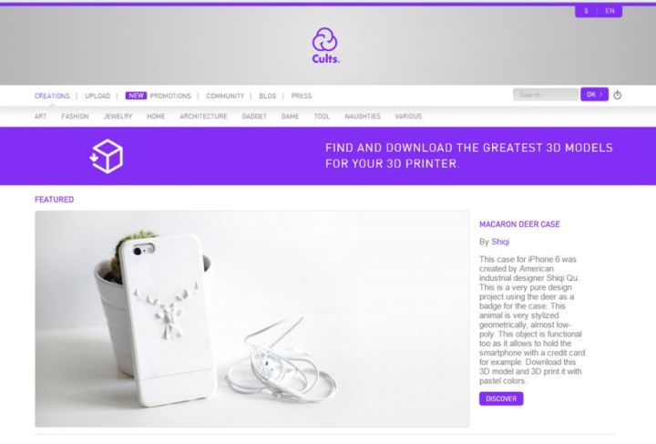 Cults 有免費及付費的3d模型下載。它是一個法國的網(wǎng)站,他們的賣點是所有3d模型的設(shè)計都非常漂亮,很多都由專業(yè)設(shè)計師設(shè)計。這網(wǎng)站設(shè)有英文語言,所以不用擔(dān)心看不懂。