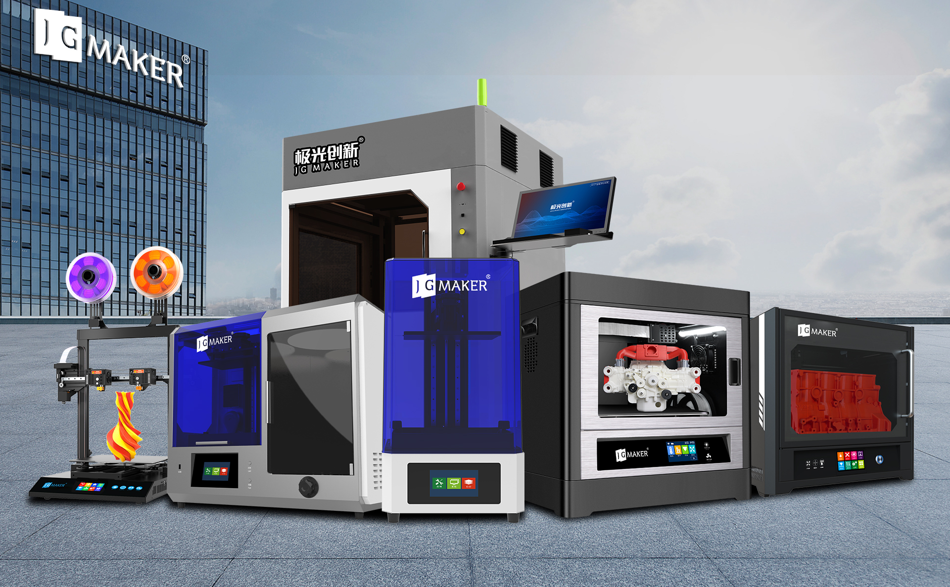 目前極光創(chuàng)新商用3D打印機(jī)的外觀結(jié)構(gòu)主要有三角型結(jié)構(gòu)、矩形桿式結(jié)構(gòu)、矩形盒式結(jié)構(gòu)、并聯(lián)臂結(jié)構(gòu)這四類,不同的結(jié)構(gòu)有著各自的特點(diǎn)以及使用場(chǎng)景,如下圖所示。