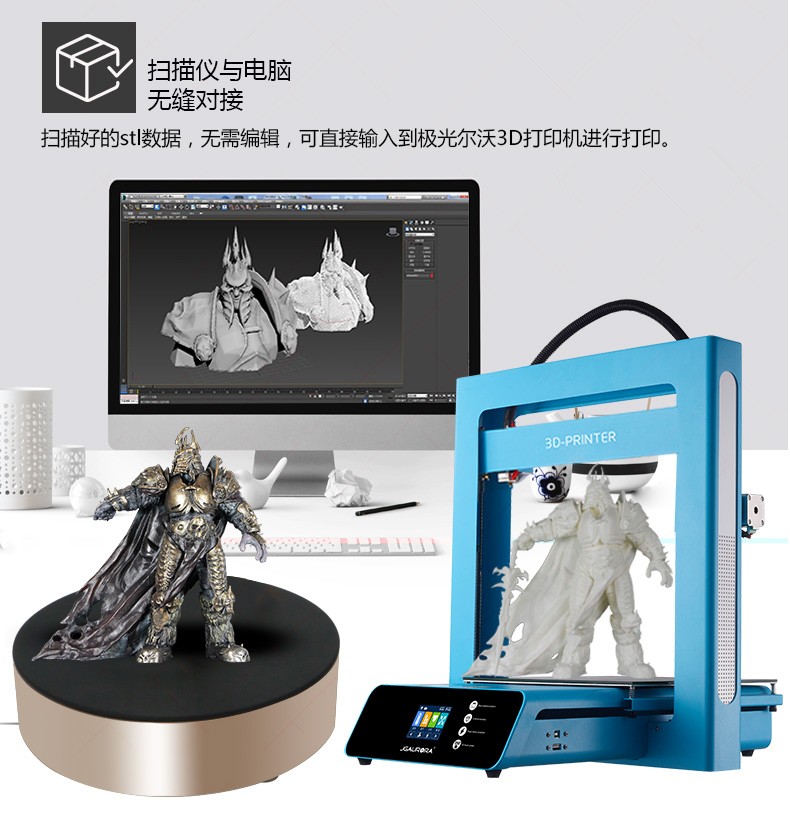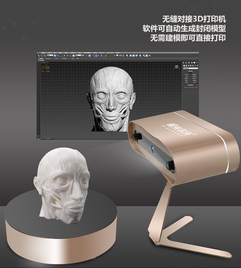 無需建模,輕松掃一掃便可自動拼接,無縫對接3D打印機軟件可自動生成封閉模型直接打印。